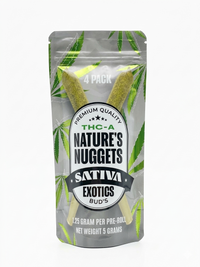 Energize your day with Nature's Nuggets THC-A Sativa pre-rolls. 4-pack of exotic 1.25g pre-rolls for focus and creativity. Premium lab-tested hemp flower.