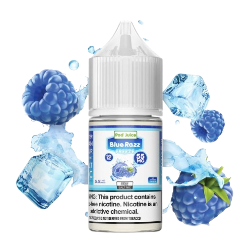 The Pod Juice Blue Razz Ice Salt Nic 30mL TFN is a top pick for vapers who crave the perfect mix of fruity sweetness and icy refreshment. Combining the tangy, candy-like flavor of blue raspberries with a cool menthol finish, this blend delivers a bold and refreshing vape from the first inhale to the last.