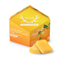 WYLD Sour Tangerine gummies, Sativa Enhanced. A flavorful gummy option.